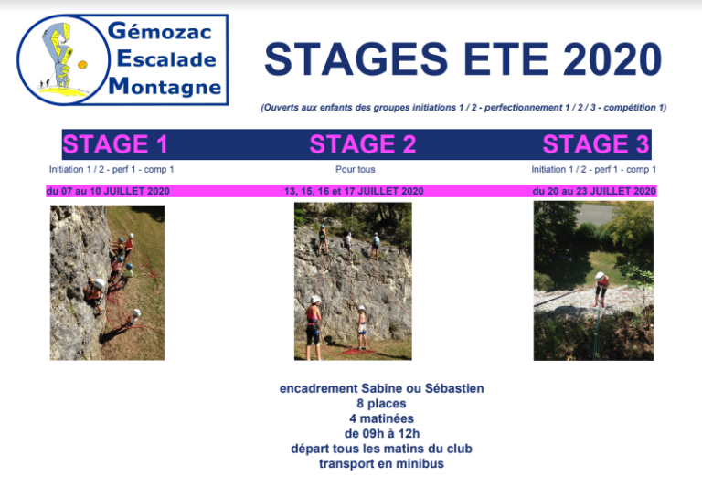 blog, PÔLE ECOLE D'ESCALADE, PÔLE LOISIR, SORTIE / STAGES, SORTIES / STAGESInfos fête du club 2020 et stages étéadmin23 juin 2020