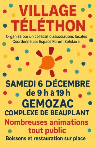 La suite du programme du Téléthon à Gémozac se déroulera le samedi 6 décembre dans le gymnase des Beauplants.