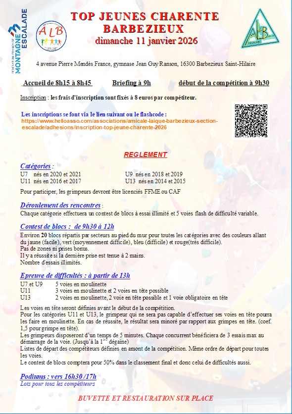 Le club de Barbezieux organise son TOP JEUNES CHARENTE le dimanche 11 janvier (U7 à U13)!